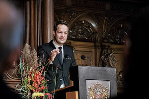 Fabian Theis, Leiter des Helmholtz Munich Computational Health Center, erhielt am 12. November 2021 im Hamburger Rathaus den Hamburger Wissenschaftspreis 2021. Die Akademie der Wissenschaften in Hamburg würdigte den Mathematikprofessor damit als Pionier auf dem Gebiet der künstlichen Intelligenz in biomedizinischen Anwendungen, vor allem im Bereich der Einzelzellbiologie. Die Zweite Bürgermeisterin und Wissenschaftssenatorin Katharina Fegebank gratulierte dem Preisträger. Der mit 100.000 Euro höchstdotierte Preis einer deutschen Wissenschaftsakademie wird gestiftet von der Hamburgischen Stiftung für Wissenschaften, Entwicklung und Kultur Helmut und Hannelore Greve.