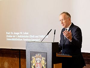 Prof. Dr. Mojib Latif, Präsident der Akademie der Wissenschaften in Hamburg und Jury-Vorsitzender: „In diesem Jahr fallen die Verleihung des Hamburger Wissenschaftspreises und das 20-jährige Jubiläum des Bestehens der Akademie zusammen. Der Leitgedanke der Akademie im Jubiläumsjahr lautet ‚Wissenschaft für die Gesellschaft‘. Der Preisträger des Hamburger Wissenschaftspreises zum Thema ‚Immunmodulation‘ verkörpert mit seiner Forschung in hervorragender Weise, was exzellente medizinische Forschung den einzelnen Menschen bringen kann, nämlich neue Therapien bei Krebs- und Autoimmunerkrankungen ebenso wie bei Infektionen. Unser Preisträger leistet auf dem Feld der Infektionsforschung beeindruckende Arbeit.“