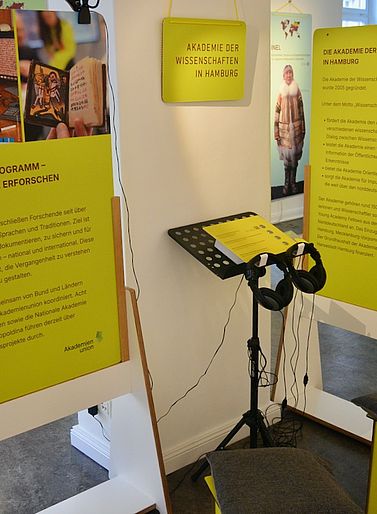 Beim anschließenden Rundgang durch die Ausstellung „Notwendig, nützlich, neu – Langzeitforschung in Hamburg“ vertieften sich die Gäste der Eröffnung in die vielfältigen Informationen: Großformatige Ausstellungstafeln, Bilder und Ausstellungsobjekte verbinden sich mit Hörstationen und Mitmach-Angeboten zu einem informativ-sinnlichen Einstieg in die Langzeitforschung der Akademie. Die Ausstellung ist in Deutsche Gebärdensprache (DGS) übersetzt und damit für taube Menschen zugänglich. In den kommenden Monaten gibt es drei begleitende Veranstaltungen zur Ausstellung (siehe Info-Kasten unten).