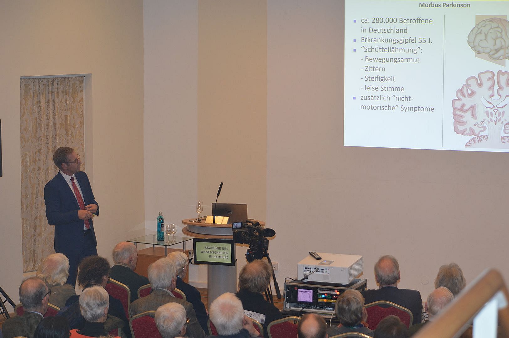 Christian Gerloff, Professor für Neurologie und Direktor der neurologischen Klinik und Poliklinik am Universitätsklinikum Hamburg-Eppendorf sowie Ordentliches Mitglied der Akademie der Wissenschaften in Hamburg, startete die Vorlesungsreihe mit seinem Vortrag „Störung der Gehirnfunktionen bei neurologischen Erkrankungen: Gibt es ein Prinzip, das alles erklärt?“. Er erklärte, warum das Gehirn mit seinen 30 Milliarden Nervenzellen und einer halben Million Kilometer Nervenbahnen auf unterschiedlichste Krankheiten mit ähnlichen Symptomen reagiert. An den Vortrag schloss sich eine lebhafte Diskussion an. Drei weitere Veranstaltungen mit namhaften Experten folgen am 9. Mai, 6. Juni und 4. Juli 2019.