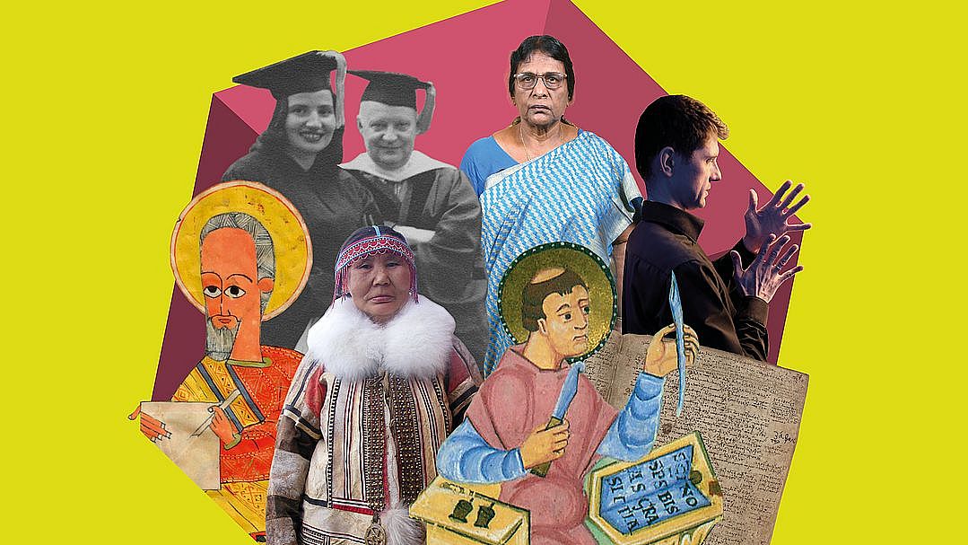 Plakat-Motiv-Download honorarfrei nutzbar zu Pressezwecken (Copyright: Nina Tschunantschar © Sándor Szeverényi; AdWHH / Jann Wilken; Indra Manuel, Ethio-SPaRe; 2026 Biblioteca Apostolica Vaticana; Jagiellonian Library; Akademie der Künste, Berlin)