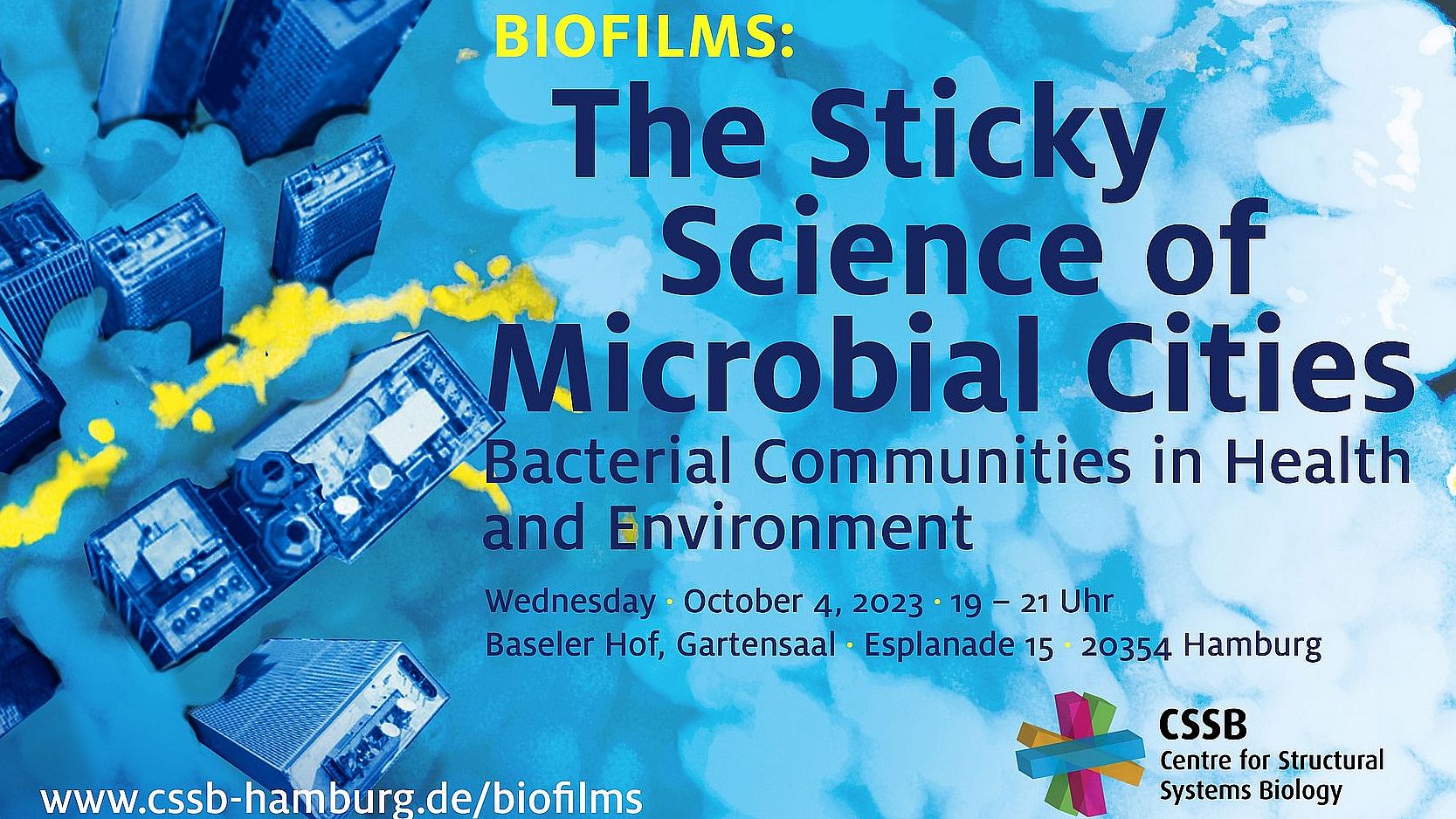 Wenn Sie diese Veranstaltung vor Ort verfolgen wollen, ist eine verbindliche Anmeldung erforderlich unter: www.cssb-hamburg.de/biofilms