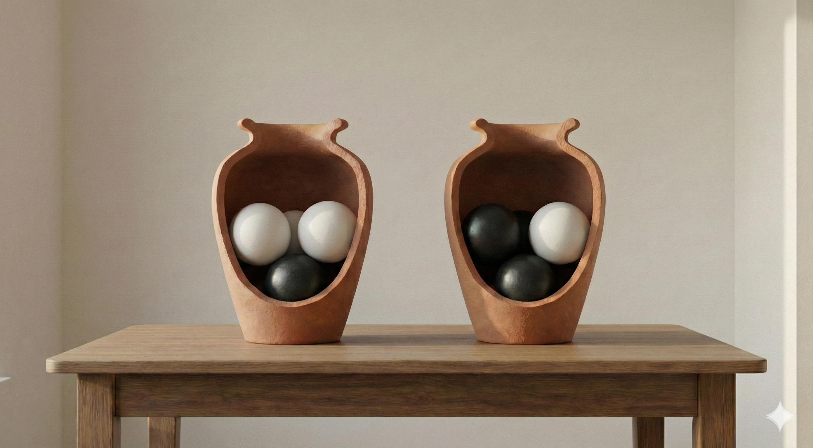 Es hilft beispielsweise, wenn die Gruppe möglichst divers ist und unabhängig wählt. Betrachten wir einmal folgendes einfaches Beispiel, welches insbesondere in der epistemischen Logik diskutiert wurde (siehe Baltag et al. 2013). Stellen Sie sich zwei Urnen vor: Die ‚weiße Urne‘ enthält überwiegend weiße Kugeln (zwei weiße, eine schwarze), die ‚schwarze Urne‘ überwiegend schwarze (zwei schwarze, eine weiße). Eine dieser Urnen wird zufällig ausgewählt und in einen Raum gestellt, ohne dass jemand weiß, welche es ist.