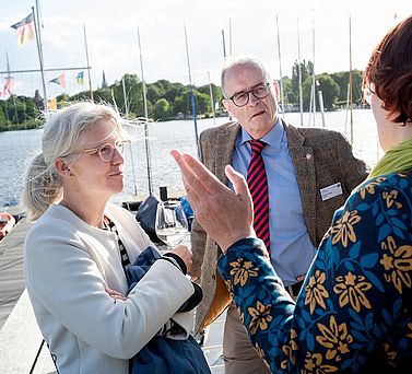 Zu angeregten Gesprächen und zum Netzwerken in lockerer Atmosphäre lud die Akademie der Wissenschaften in Hamburg am 4. Juli 2024 in das Clubhaus des Norddeutschen Regatta-Vereins (NRV) direkt an der Außenalster. Zum Auftakt hielt als Gastredner der Rechtsphilosoph Prof. emeritus Dr. Reinhard Merkel einen Vortrag zum Thema „Freiheit und Recht. Person – Staat – weltbürgerliche Verfassung“. Freiheit ist das Jahresthema 2024 sowohl der Akademie und ihrer Essay-Reihe als auch des bundesweiten Wissenschaftsjahres 2024 auf Initiative des Bundesministeriums für Bildung und Forschung.