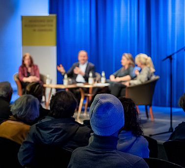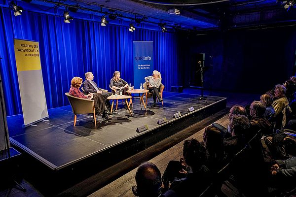 Die Podiumsdiskussion zur Frage „Demokratie in Gefahr: Was rettet unsere Freiheit?“ fand in Kooperation mit NDR Info am 12. Dezember 2023 in Hamburg, im resonanzraum statt. Auf dem Podium: