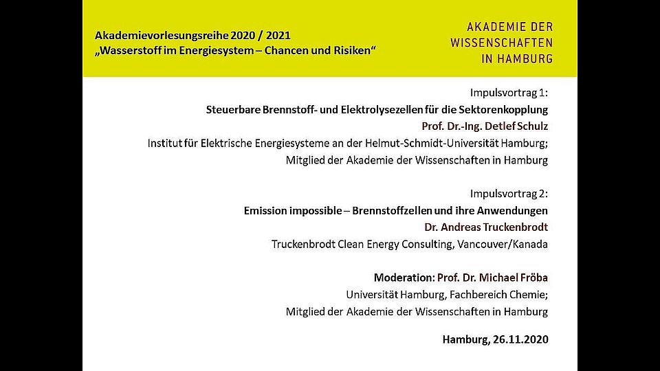 Vortrag von Prof. Dr.-Ing. Detlef Schulz im Rahmen der Vorlesungsreihe 2020/2021 "Wasserstoff im Energiesystem - Chancen und Risiken"